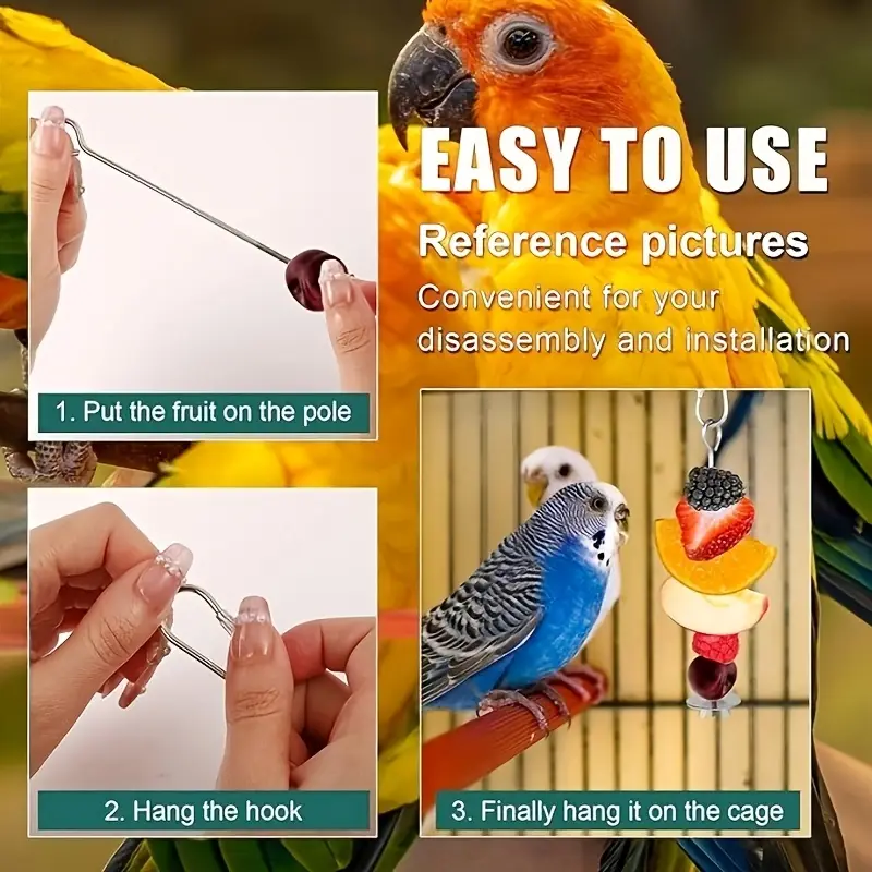 🍉 Fruit Hook for Extra Fun – The integrated fruit hook allows you to hang fresh fruits, veggies, and other treats, encouraging your bird or small pet to forage and play, which helps promote mental stimulation and physical activity.