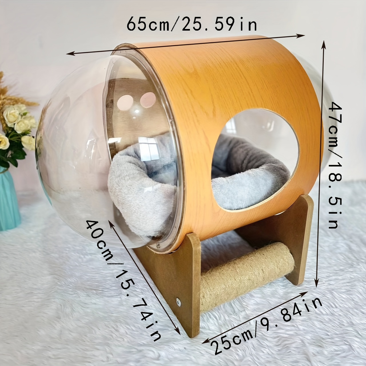 Spaceship Space Capsule Cat Bed – Large Transparent Wooden Cat House for Modern Indoor Spaces