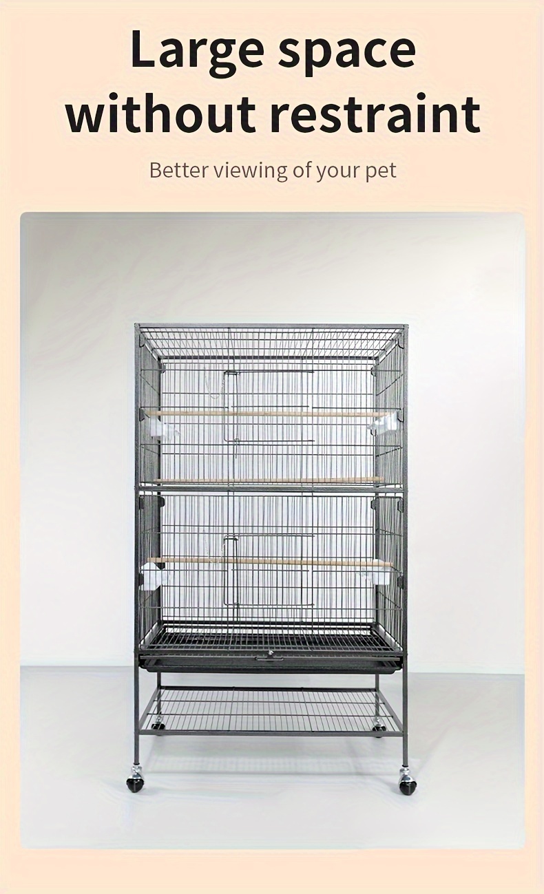 Whether you have parrots, cockatoos, conures, or other large bird species, this cage is designed to meet their needs. With a spacious interior, it can comfortably accommodate birds of various sizes and breeds, giving them plenty of room to stretch their wings and thrive.