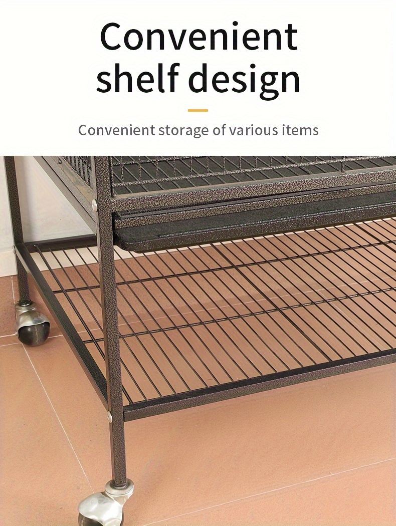 Crafted from high-quality metal, this birdcage is built to last. The powder-coated finish ensures long-term durability, while also being resistant to rust and wear, providing a safe and secure home for your feathered friends. Perfect for both indoor and outdoor environments, this cage stands up to daily use.