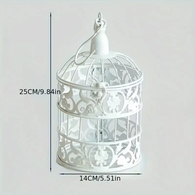 This elegant iron birdcage brings timeless European charm to your home, with its delicate, intricate patterns and graceful white finish. Perfect for adding a touch of sophistication to any space, it’s a stunning blend of vintage and modern appeal.