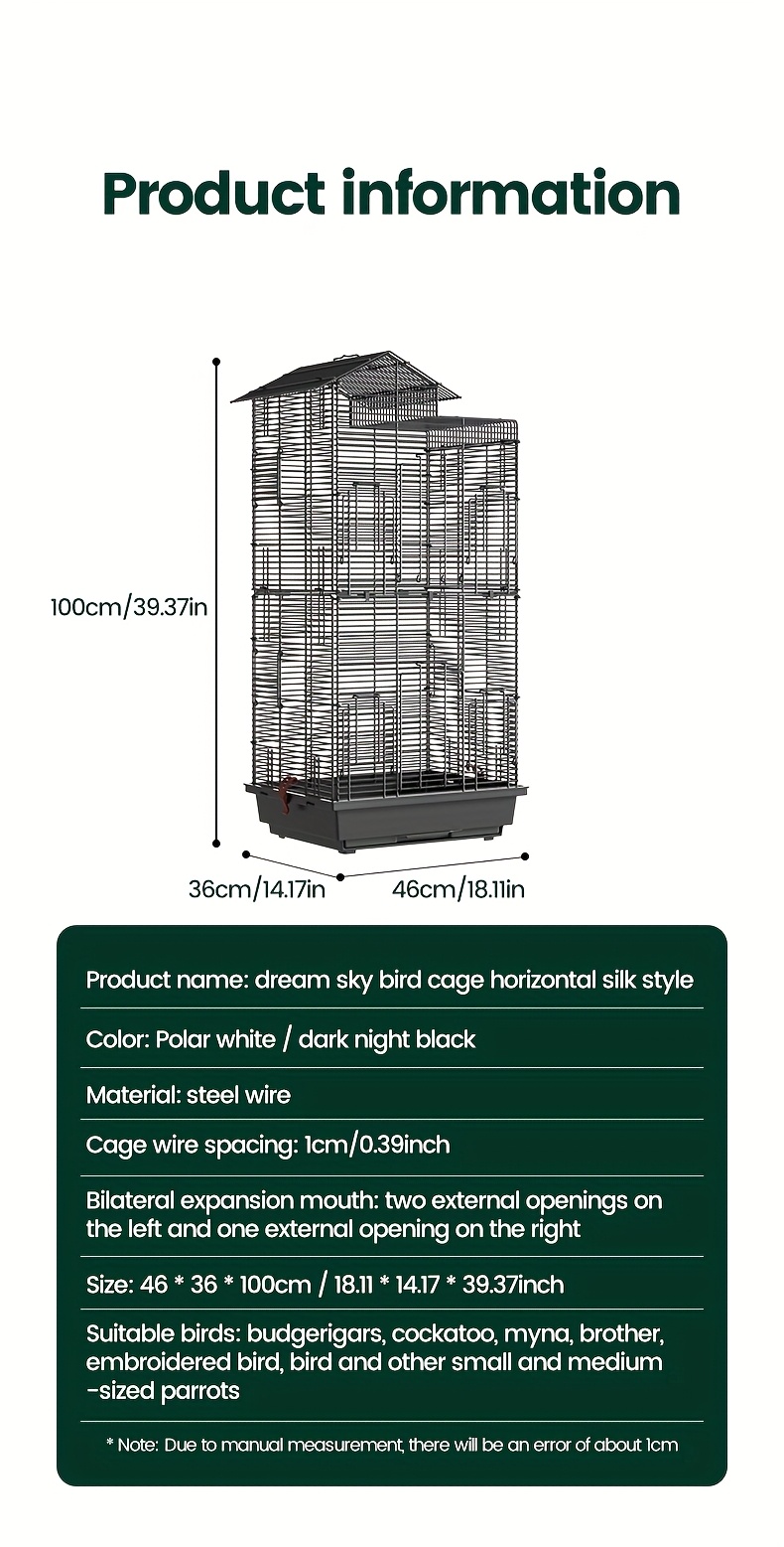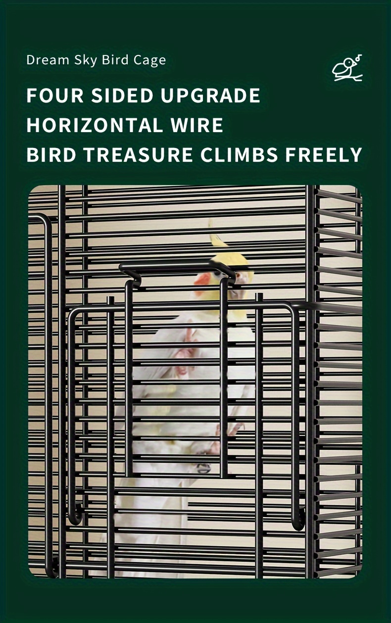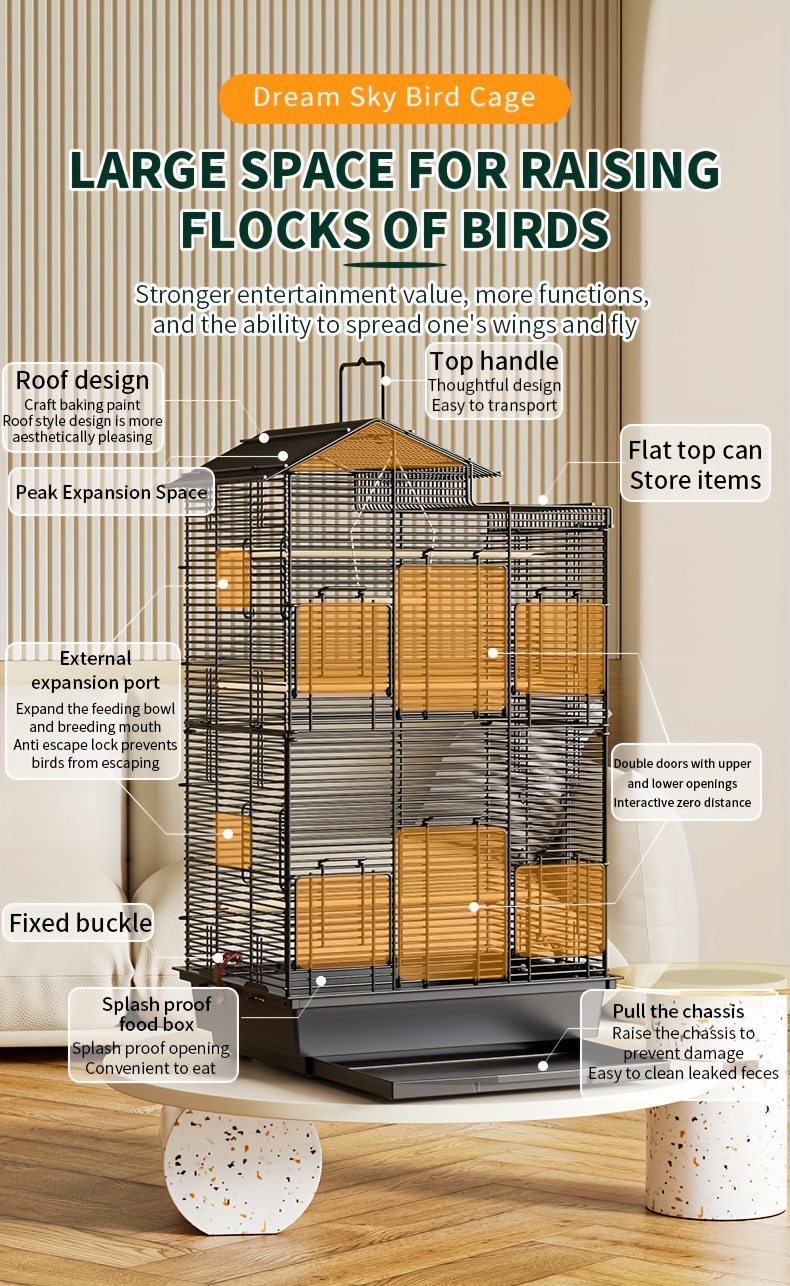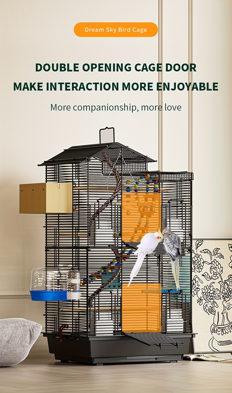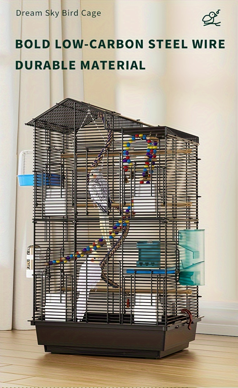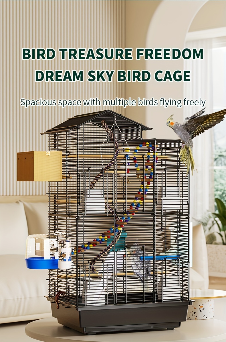 Luxury Metal Bird Cage for Parrots & Large Birds - Spacious Breeding Villa with Viewing Window