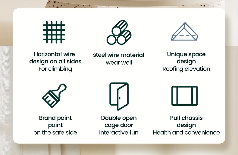 This cage features a clear viewing window, allowing you to observe your bird’s activities without disturbing them. It’s perfect for monitoring your bird’s behavior and offering a peaceful and calming environment for both you and your pet. This sleek and elegant design brings both function and style to your home.
