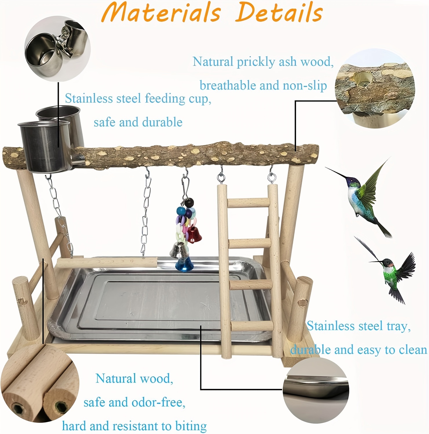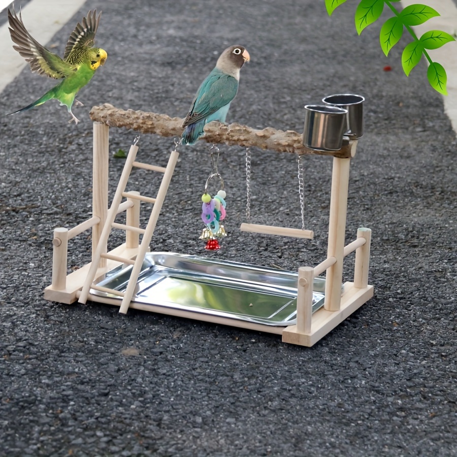 PlayPal Wooden Parrot Stand – Perch, Ladder, Swing & Feeder for Small Birds