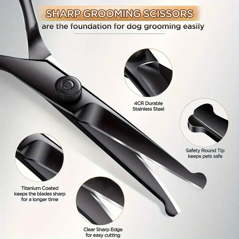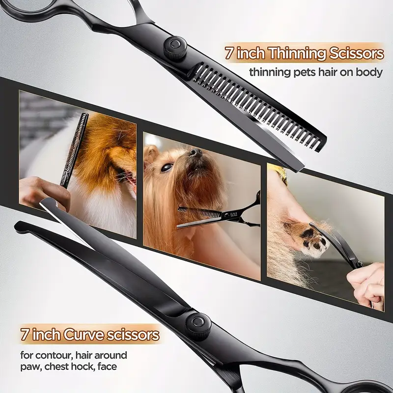 ✔ Multiple Shears Included – Includes straight, curved, thinning, and chunker shears to cater to every grooming need, from trimming to detailing 🌟.