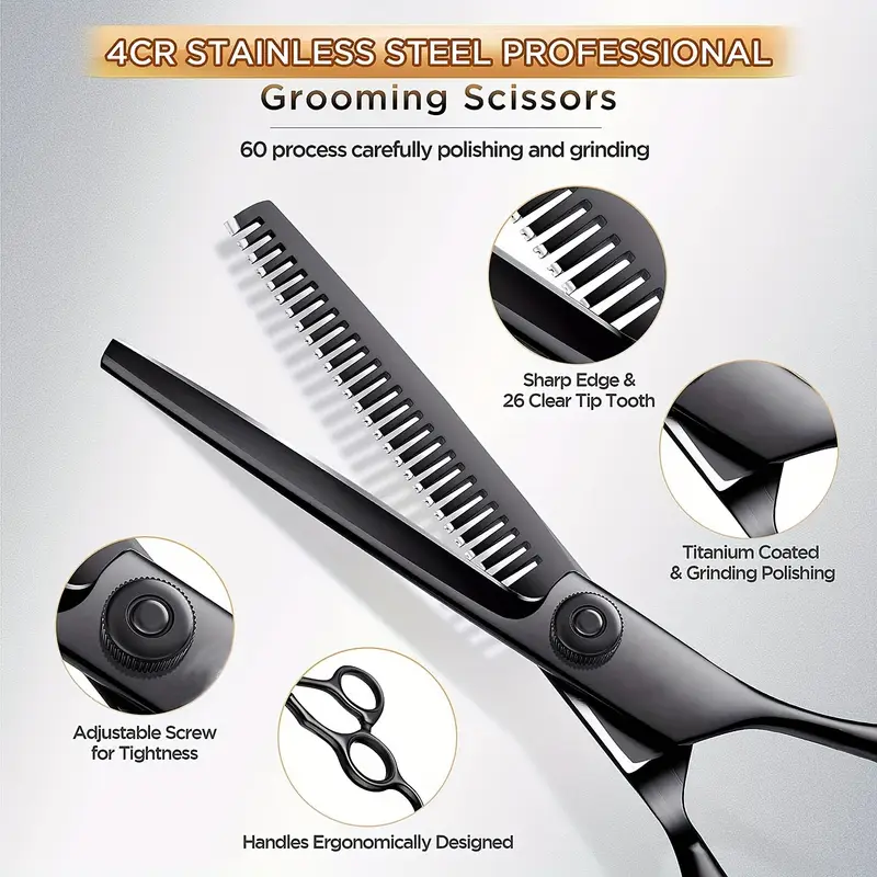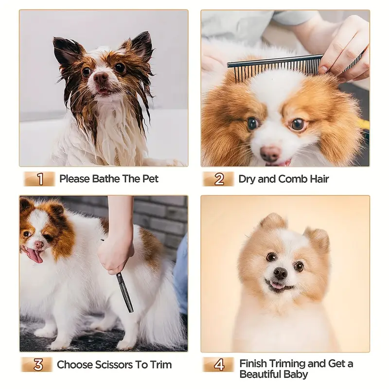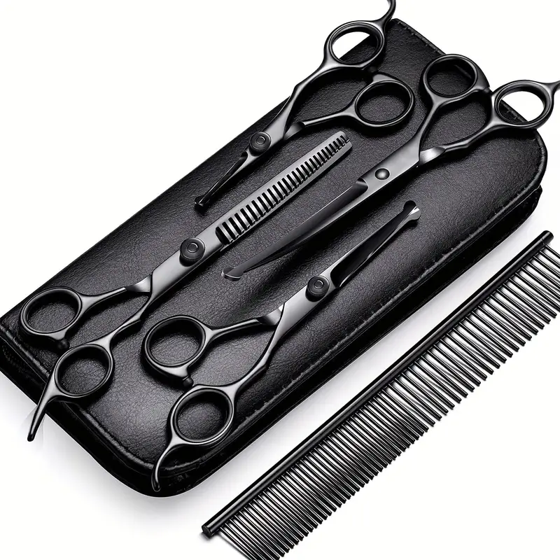 Keep your pet looking their best with the Professional 6-in-1 Pet Grooming Scissors Set! This high-quality set is designed for both dogs 🐶 and cats 🐱, featuring durable stainless steel shears for safe, precise grooming: